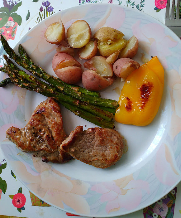 U nas rychlovka, veprova panenka jako minutka, male bramburky a grilovany chrest a paprika.