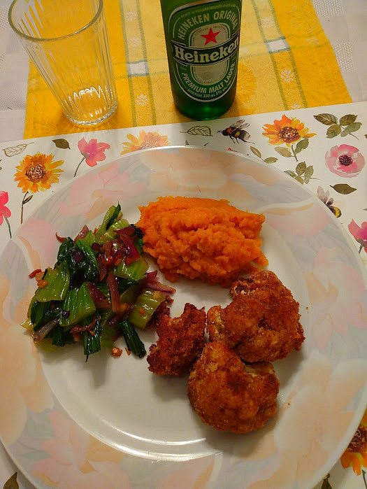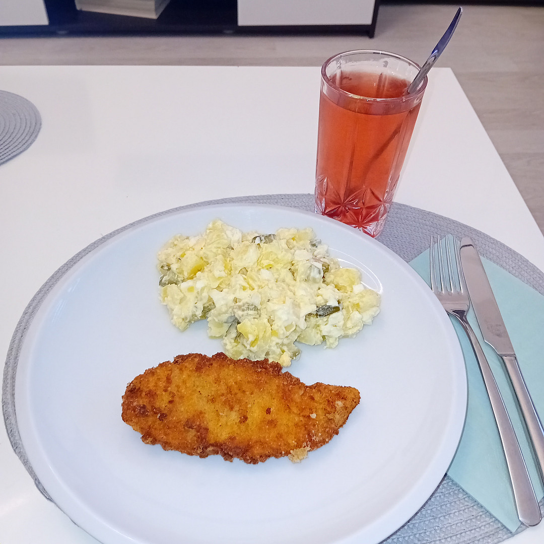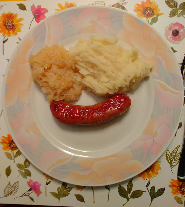 U nás dnes čevabčiči s bramborem a hořčicí. K tomu rajčatovo- paprikový salát. K odpolední kávě, jsme dojídali míša řezy.