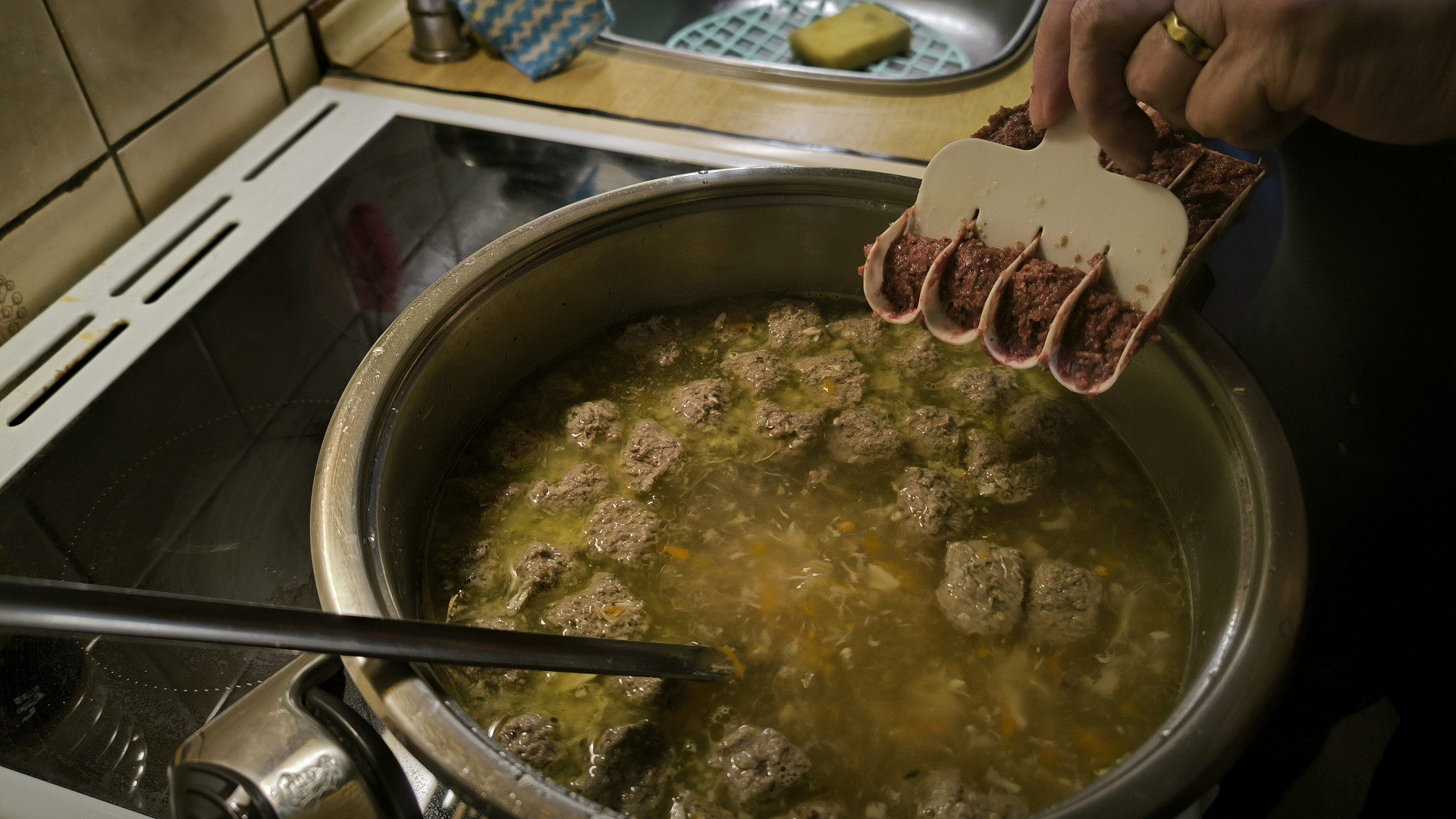 Knedlíčky do polévky jsme moc nedělala, protože jsem vždycky dělala polévky hodně a nechtělo se mi. Dělala jsem přes haluškovač játrovou rýži.