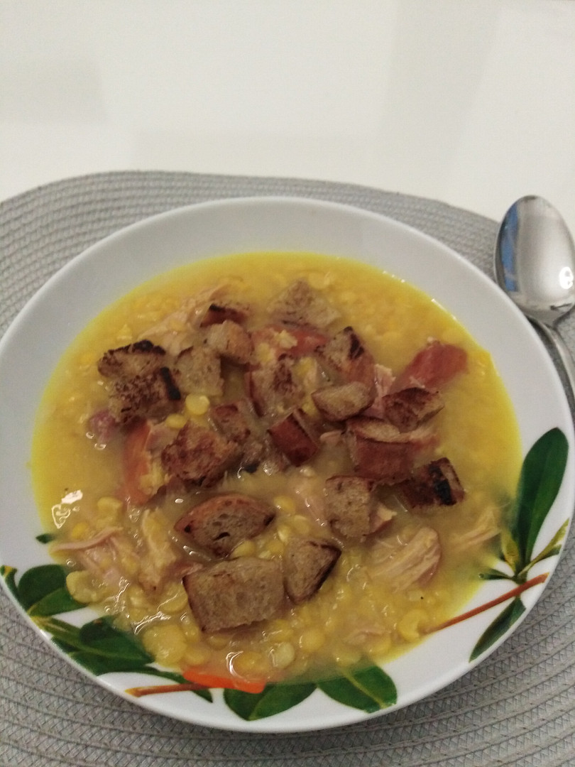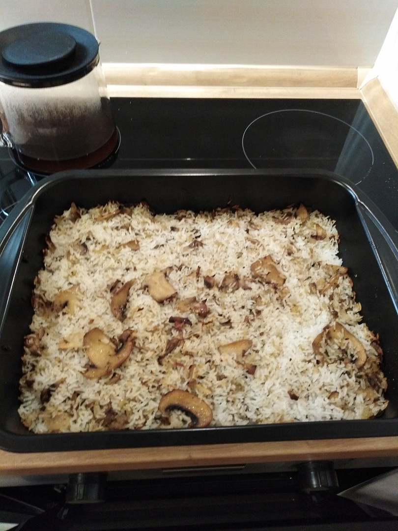 Dnes jsme ještě měli hrachovou polévku a jako druhý chod kubu, ale musela jsem udělat rýži se žampiony, protože manžel kroupy nechce.