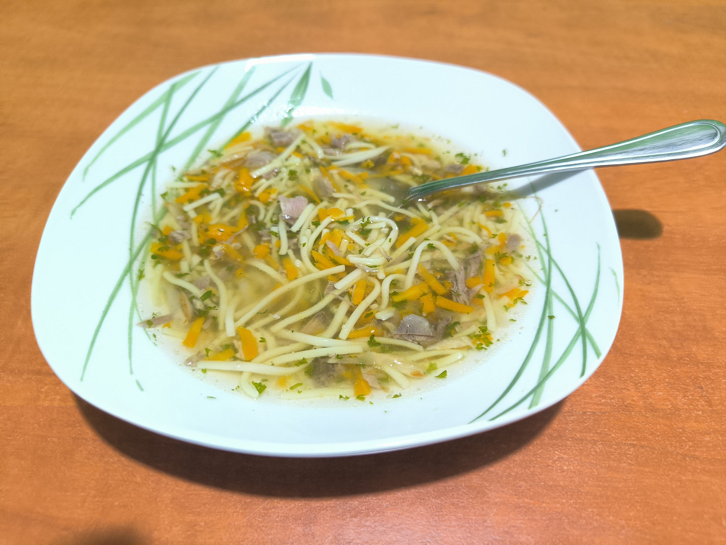 Já si dnes udělala čínskou nudlovou polévku a k večeru bude zadělávaný hrášek s houbami a bramborem.