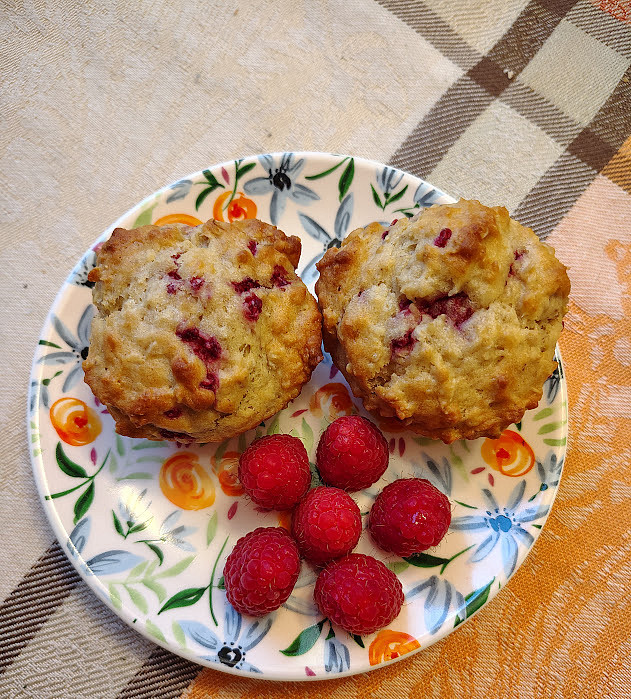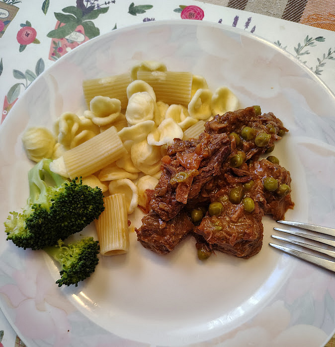 u nas byla hovezi polevka, hovezi ragu, manzel s braborami a ja se zbytkem testovin a dusenou broccoli. Upekla jsem muffins s malinami.