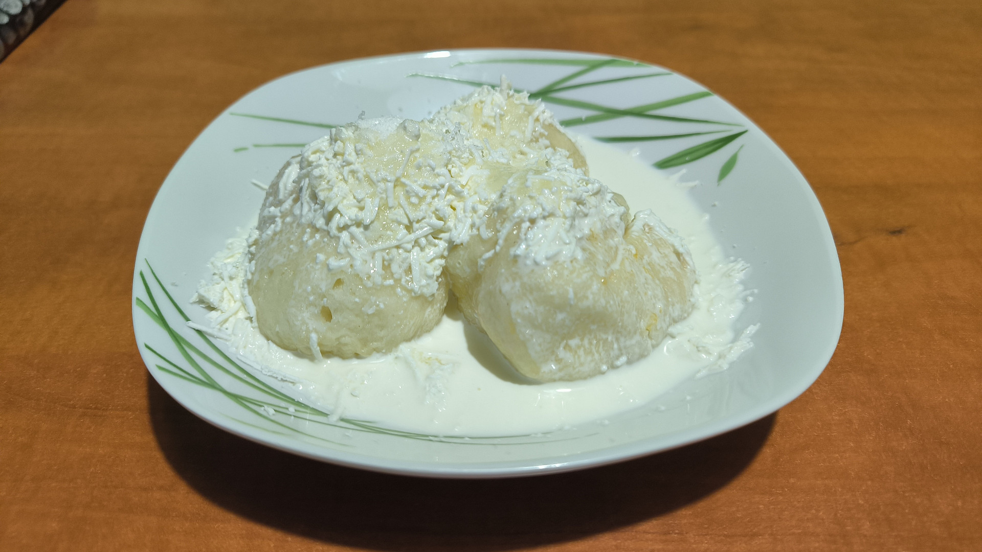 A protože přišel na oběd Maty, vyndala jsem z mrazáku kynuté merunkové knedlíky.