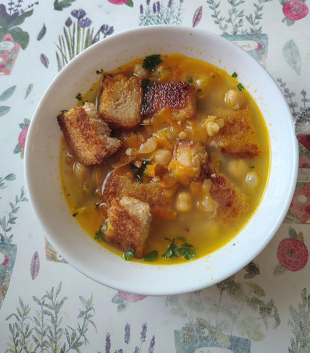 u nas polevka cizrnova s mrkvi a crouton, kureci palicky na grilu a jeste nevim jak udelam brambory. Jiz jsme vypili spenatove smoothie😁