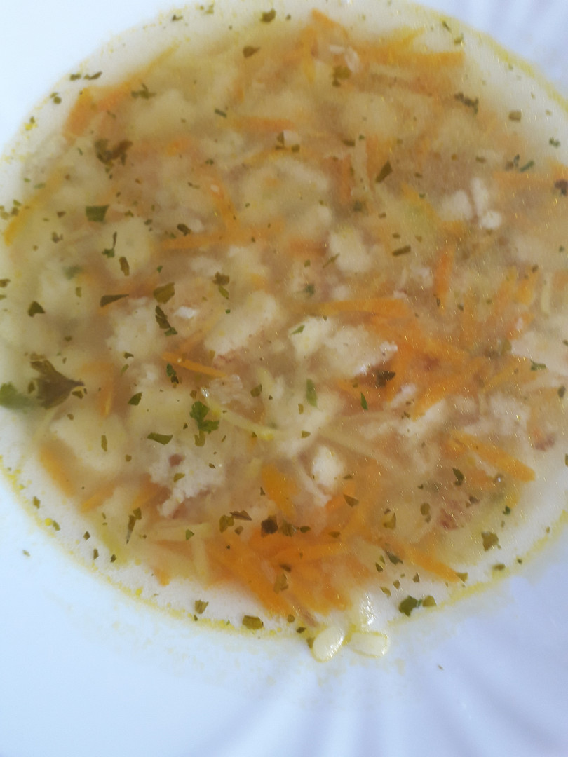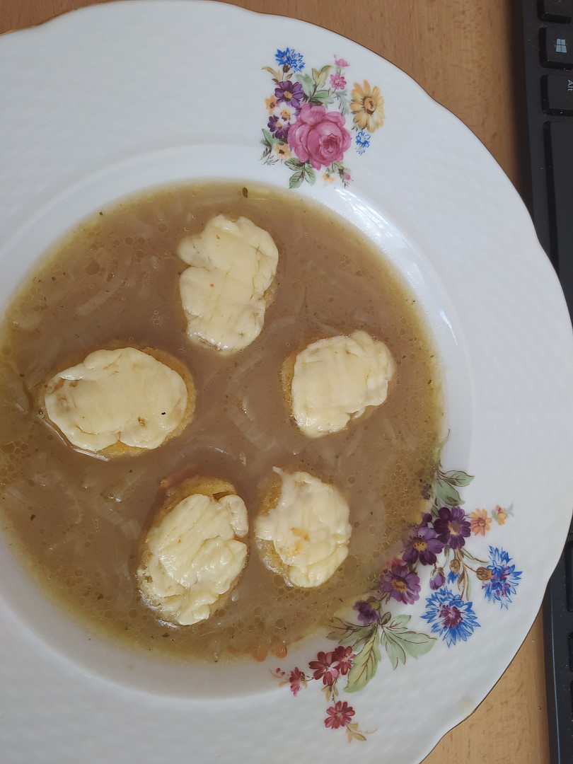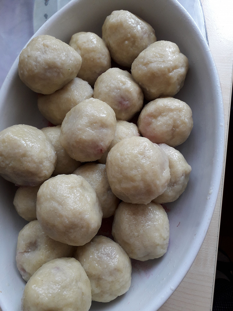 Polévka od včera ještě. Syn si poručil knedlíky z tvarohového těsta s jablky a švestkami sypané opraženou strouhankou. tak jedeme dnes na sladkou notu!!