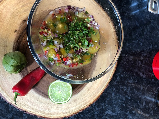 Objevila jsem tomatillos ( neco jako zelena rajcata) a vyrobila salsa verde s chili, cesnekem a koriandrem. Je to moc dobre ke grilovanym masum a da se to uchovat i v lednici delsi dobu.