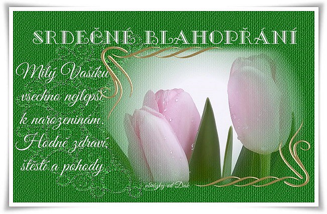 k dnešnímu svátku Ti přeji všechno nejlepší, hlavně hodně pevného zdraví, štěstí a rodinné pohody