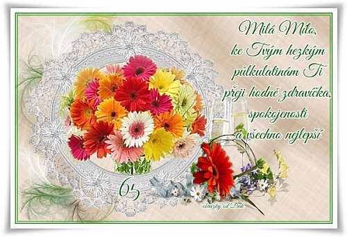 Mílo i Tobě vše nejlepší k půlkulatinám, hodně pevného zdraví , štěstí a pohody