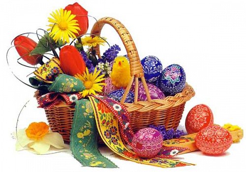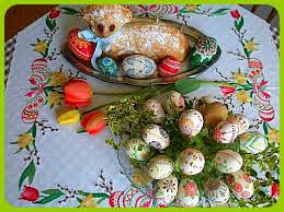 barevnými vajíčky, beránkem a zeleným osením