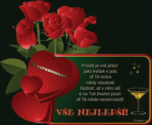 Přeji Vám vše, co člověku lze přát, zdraví, štěstí, spokojenost, ať svoji lásku máte vždy komu dát a i z maličkostí umíte se stále radovat.