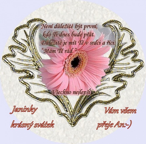 Jana Remková, Pipre, Bibinka = vše nejlepší k svátku, hodně štěstí, zdraví, dárků, vyplnění mnohých přání, hodně štěstí, milování, to je moje blahopřání.