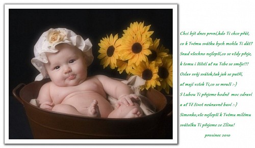 K Tvým dnešním krásným narozeninám Ti přeji z celého svého srdce vše nejlepší a posílám obrázek.