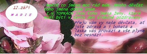 I já bych chtěla popřát ostatním uživatelkám tohoto jména. Marie, Marušky atd., přeji Vám všechno nejlepší!