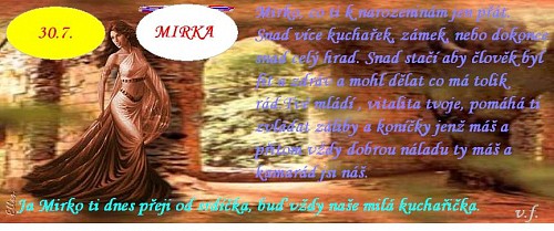 Milá Mirko přeji ti k tvým narozeninám hodně zdraví, štěstí,pohody v rodině, dětičky ať ti dělají samou radost,protože ty si to zasloužíš