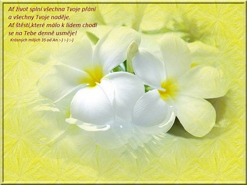 Posílám Ti kytičku, bohužel jen virtuální, i když bych Ti moc ráda dala skutečnou. Přeji hezký slavnostní den !