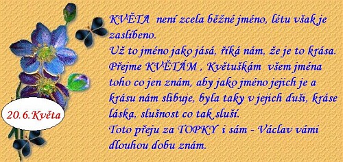 Květuškám také přeji, ale jsem nějak zmatená, můj kalendář trvá na tom, že svátek má Milan...