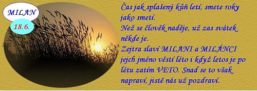 Ale dnes má svátek Milánek - Hafíčku,vyřidiď broučkovi malýmu ,že přeji mu krásný sváteček a ať si dnešní den užije