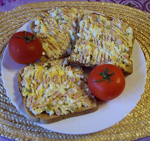 Krok 3: Máslo vyšleháme s hořčicí dojemna a vmícháme okurky, salám i vejce. Osolíme dle chuti a mažeme na čerstvé pečivo.