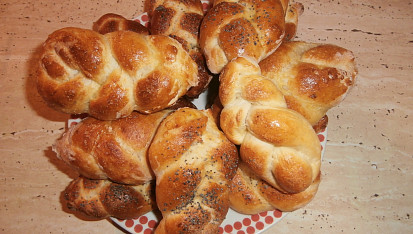 Krok 2: V troše vlažného mléka rozpustíme 2 lžíce másla, spojíme s kváskem a zaděláme těsto (trochu řidší). Po vykynutí upleteme housky, které poklademe na plech s pečícím papírem, pomažeme je rozšlehaným vajíčkem, posypeme mákem nebo kmínem a hrubou solí.