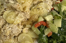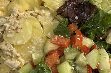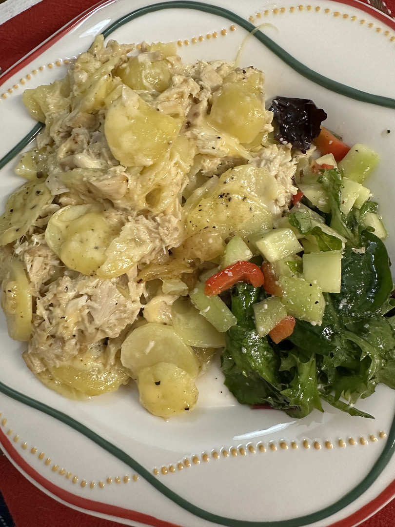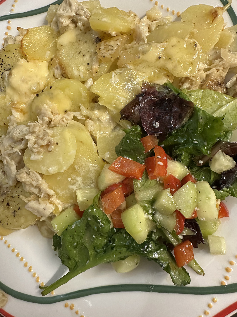 Zapečené brambory se smetanou a kuřecím masem