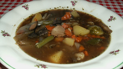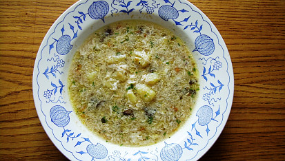 Krok 1: Na másle orestujeme zeleninu, česnek na plátky, přidáme nakrájené brambory, mražené houby, osolíme zalijeme vodou a necháme vařit, až brambory změknou. Nakonec dáme kousek masoxu a rozkvedlané vejce. Na ozdobu zelenou petrželku.