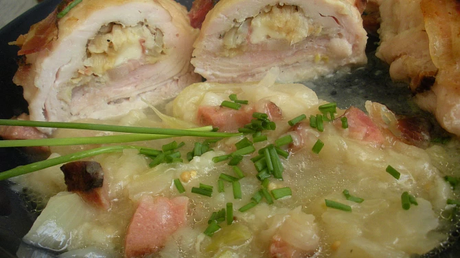 Kuřecí závitky na zelí polévané pivem