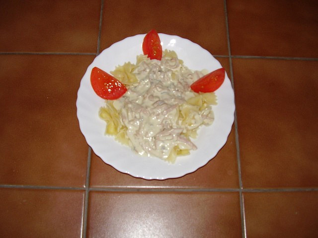 Krok 2: Vaříme, dokud se nám niva nerozpustí a omáčka nezhoustne. Těstoviny si uvaříme dle návodu a podáváme přelité omáčkou.