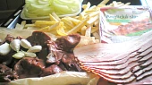 Krok 2: Na sádle trochu orestujeme nakrájenou anglickou slaninu přibližně 2 minuty a přidáme na půlměsíčky nakrájenou cibuli a na plátky nakrájený česnek.