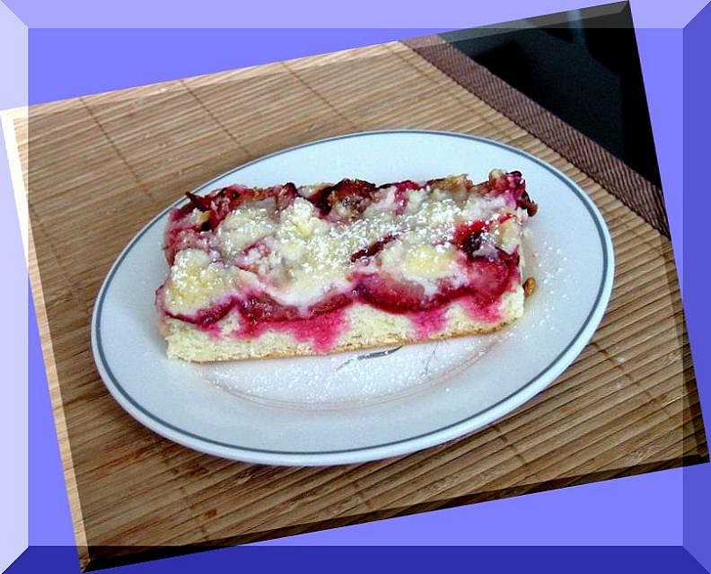 Krok 7: Těsto poklademe půlkami švestek řezem nahoru, posypeme skořicovým cukrem a nakonec drobenkou. Necháme ještě asi 30 minut kynout.