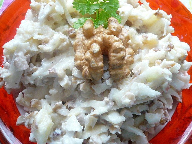 Legendární salát původem z New Yorku spojuje křupavý celer, sladká jablka, hrozny a vlašské ořechy v jemném dresinku. Lehký, osvěžující a elegantní předkrm, který se hodí na slavnostní stůl i jako zdravá svačina.