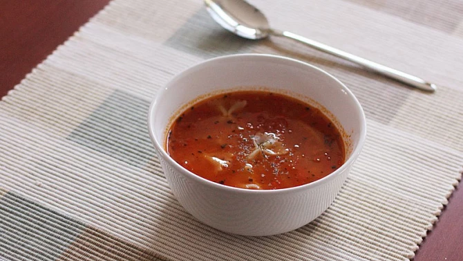 Krok 3: Na závěr přidáme těstoviny a dochutíme bazalkou, pár lístky můžeme dozdobit.