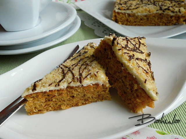 Šťavnatá buchta, která je vláčná díky mrkvi a banánu, a je potřená výborným tvarohovým krémem. Afrika řezy jsou tolik oblíbené právě kvůli svěží chuti a jemné konzistenci. Třešničkou na dortu jsou ořechy, které jsou nejen nahoře jako posypka, ale také uvnitř těsta.