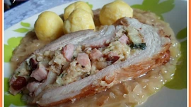 plněný bůček houbovou nádivkou babicovy dobroty,