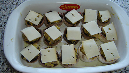 na másle necháme zesklovanět pokrájenou cibulku, pak přidáme pokrájené nožičky žampionů. Osolíme dle chuti a podusíme doměkka. Pak vmícháme pokrájený salám, měkký sýr a jedno až dvě vajíčka. Krok 4: Touto směsí naplníme hlavičky žampionů, na povrch položíme čtvereček sýra a dáme do trouby zapéct. Můžeme udělat i obměnu, že naplněný žampion obalíme v trojobalu a osmažíme.
