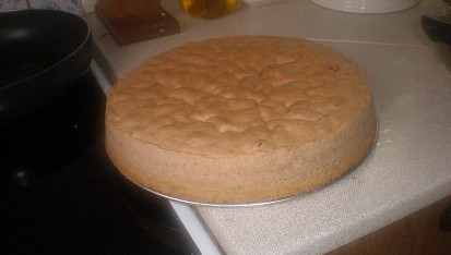 Krok 2: Formy (24 a 14 cm) vymažte tukem a vysypejte moukou. Nalijte do nich těsto a pečte ve vyhřáté troubě při 160 °C, asi 45 minut. Nechte vychladnout a pak vyklopte. Korpusy vodorovně rozkrojte na tři díly.