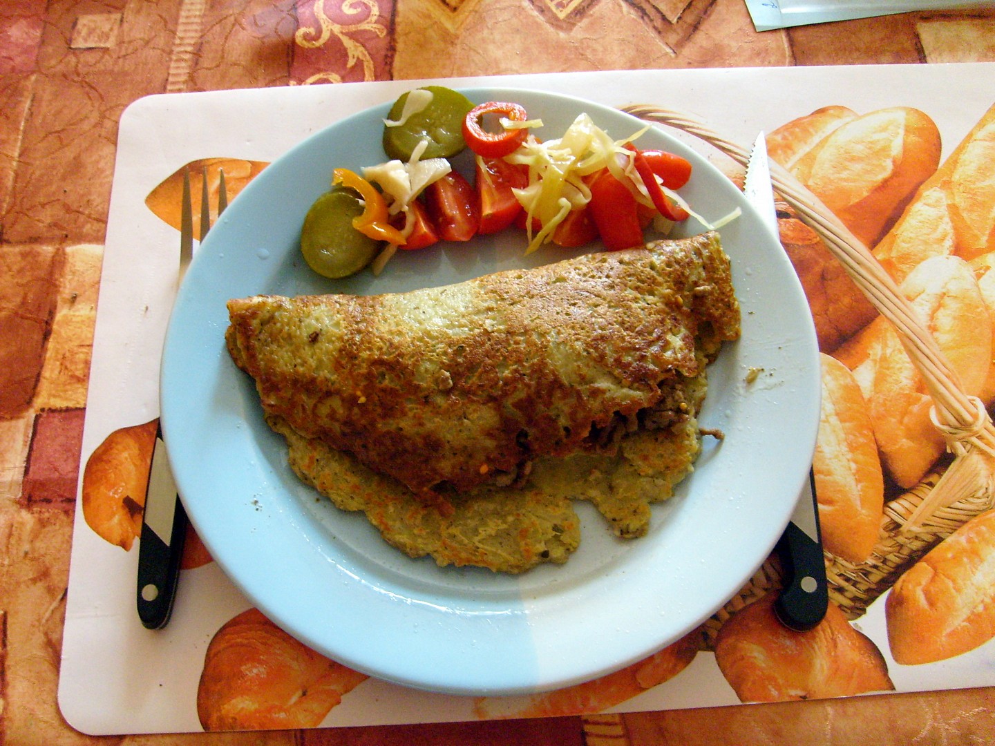 Krok 4: Na bramborák na jednu polovinu navrstvíme směs a přeložíme. Dobrou chuť