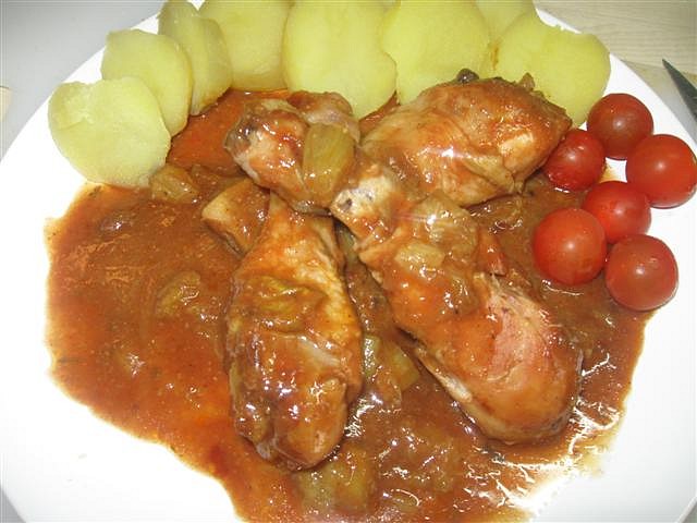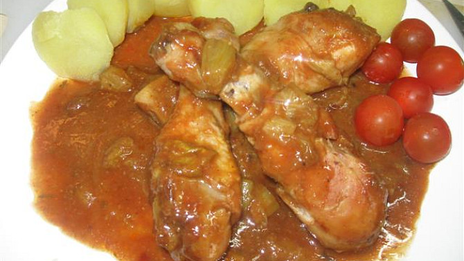 Kuřecí paličky naložíme do marinády ze sójové omáčky, medu, rajčatového protlaku a koření, poté je upečeme s kousky rebarbory dozlatova. Výsledkem je šťavnaté maso s jemně nasládlou a lehce kyselou chutí.