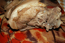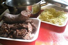 Příprava: Jelita, cibule,česnek,brambor, sůl, majoránka