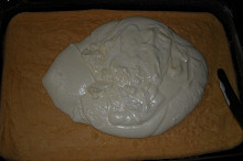 na piškotu rozetřená poleva