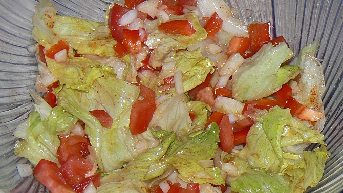 Krok 1: Ledový salát natrháme nebo pokrájíme do větší mísy.