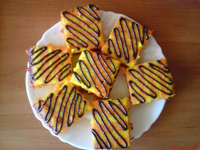 Krok 9: Nakrájíme na čtverečky a zdobíme čokoládovou polevou.