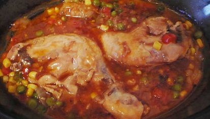 Krok 4: Asi po deseti minutách,(správný okamžik je ten, kdy v pekáčku není žádná tekutina a začínají je dělat "přípečky") vlijeme hrneček vody, ve které jsme rozpustili bujón a rozmíchali drcený česnek a kečup.