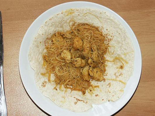 Krok 7: Placky přihřejeme v mikrovlnce nebo na plechu v troubě, aby byly teplé. Když se nám podaří je rozkrojit a udělat kapsu, tak je plníme dovnitř, můžeme servírovat i navrch na placku.
