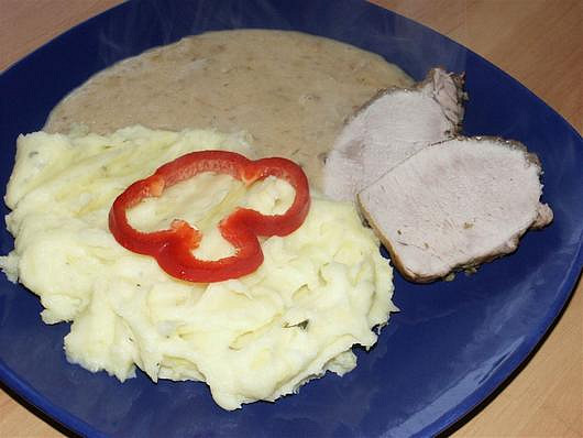 Krok 4: Solamyl a smetanu přilijeme do šťávy z masa a necháme vzkypět,ochutíme pepřem a dosolíme.