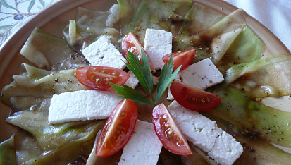 Krok 2: Med, olej, sůl, pepř, balsamiko prošlehat a naložit do toho aspoň na 15 minut cuketové plátky.