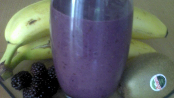 Zdravý, rychlý a osvěžující mléčný koktejl s ostružinami, banánem a hruškou. Ostružiny propůjčí nádherně fialovou, sytou barvu. Přidejte i pár lžic bílého jogurtu pro krémovou konzistenci a dle potřeby nařeďte mlékem.