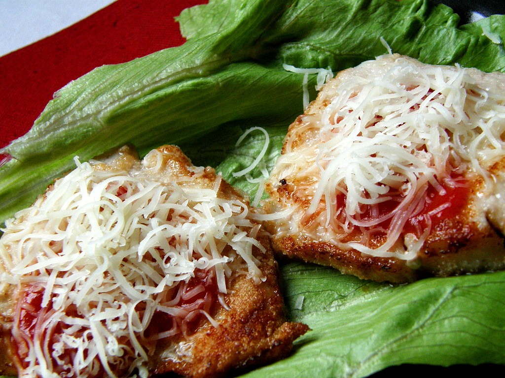 Krok 2: Hotové maso potřeme kečupem a posypeme sýrem.