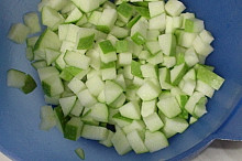 Jablka nakrájíme na malé kostičky a zakápneme citronem