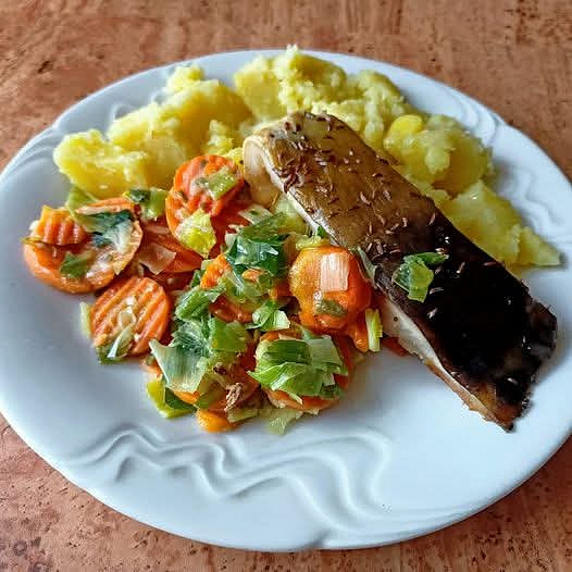 Kapr s dušenou zeleninou