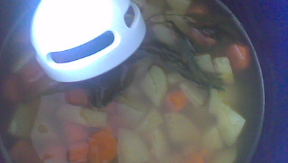 Krok 1: Až na cibulku dáme do hrnce vařit všechnu zeleninu s bujónem.
